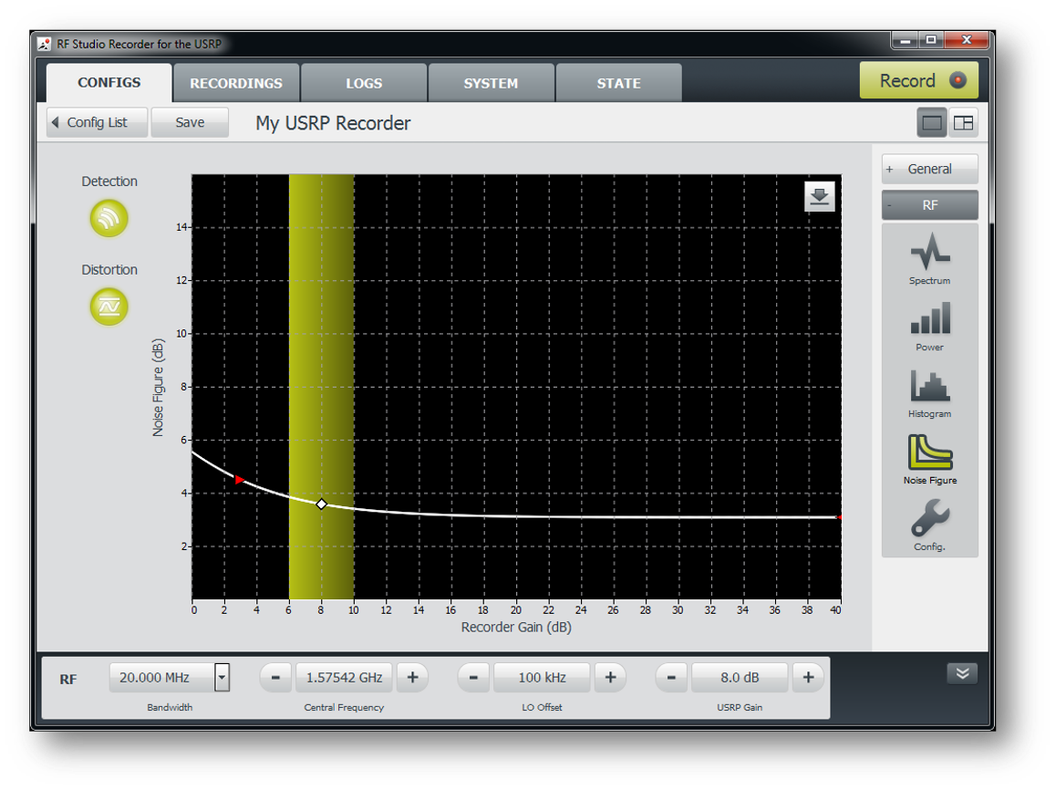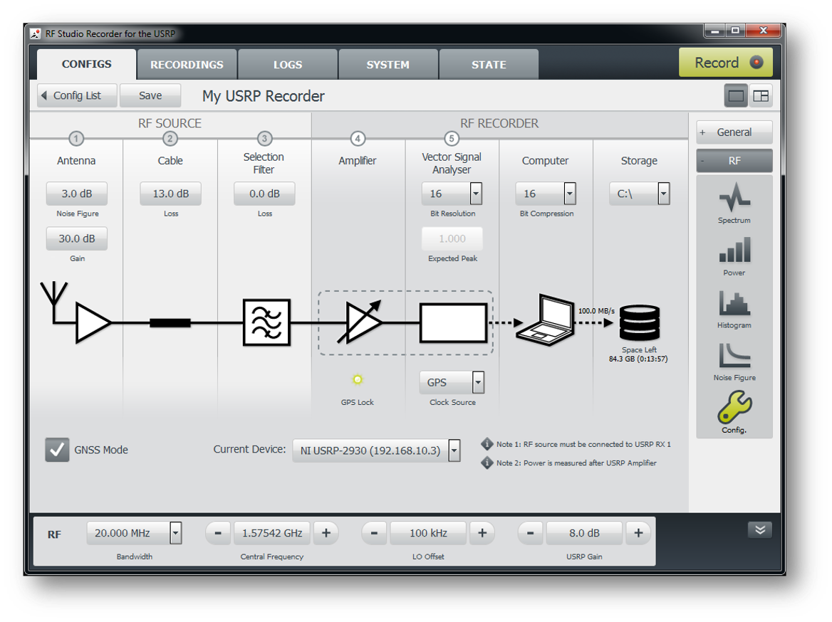 设置界面一目了然,RF用户可自由设置其RF链路包括频率、带宽、增益、插损、采样位数及存储位置。