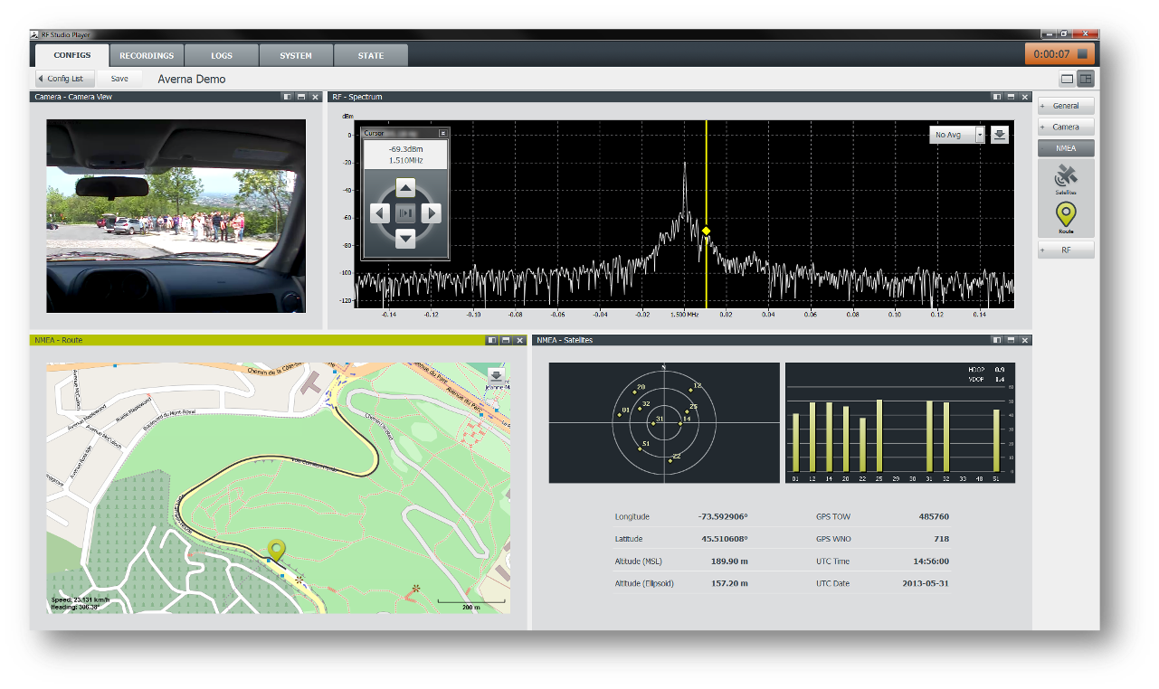 DriveView选件,让用户可以在记录射频信号的同时,记录同步的GNSS位置信息,周边的视频及音频环境。